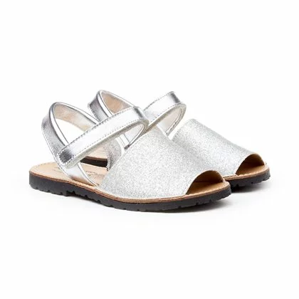 Corte: Piel charol natural y tejido con purpurina/glitter.