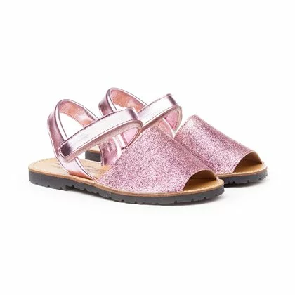 Corte: Piel charol natural y tejido con purpurina/glitter.