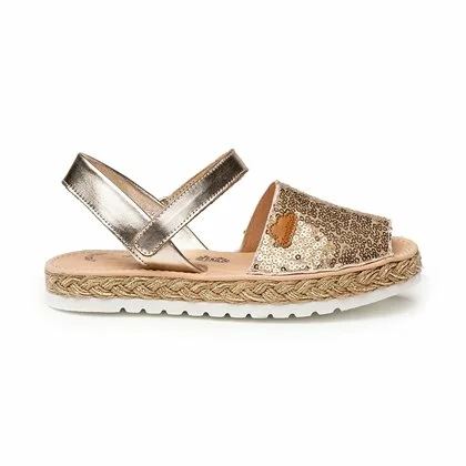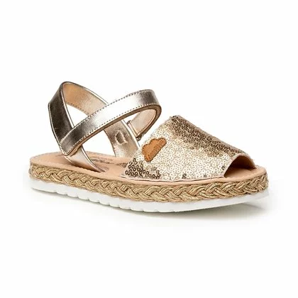 Abarcas Menorquinas Niña Piel Y Lentejuelas Plantilla Acolchada Velcro 224 Platino, De Angelitos