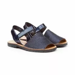 Abarcas Menorquinas Niña Piel Charol Y Glitter Velcro 208 Marino, De Angelitos