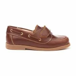Derbies Colegiales Niño Piel Velcro Punta Redonda 301 Chocolate, De Angelitos