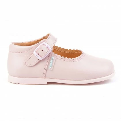 Merceditas Colegiales Infantil Niña Piel Hebilla 500 Rosa, De Angelitos