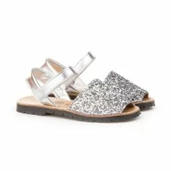 Abarcas Menorquinas Niña Piel Y Glitter Velcro 203 Plata, De Angelitos