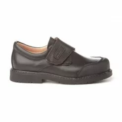 Zapatos Colegiales Niño Piel Puntera Reforzada Velcro 452 Chocolate, De Angelitos