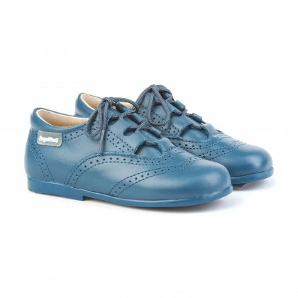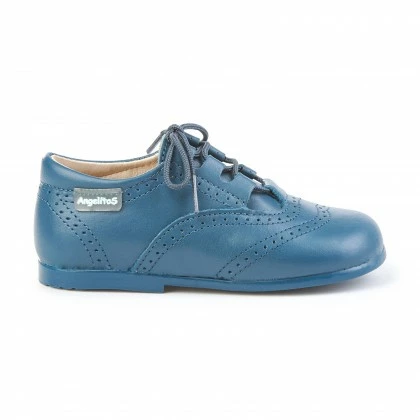 Zapatos Inglesitos Colegiales Infantil Niño Niña Piel Cordones 505 Azul, De Angelitos